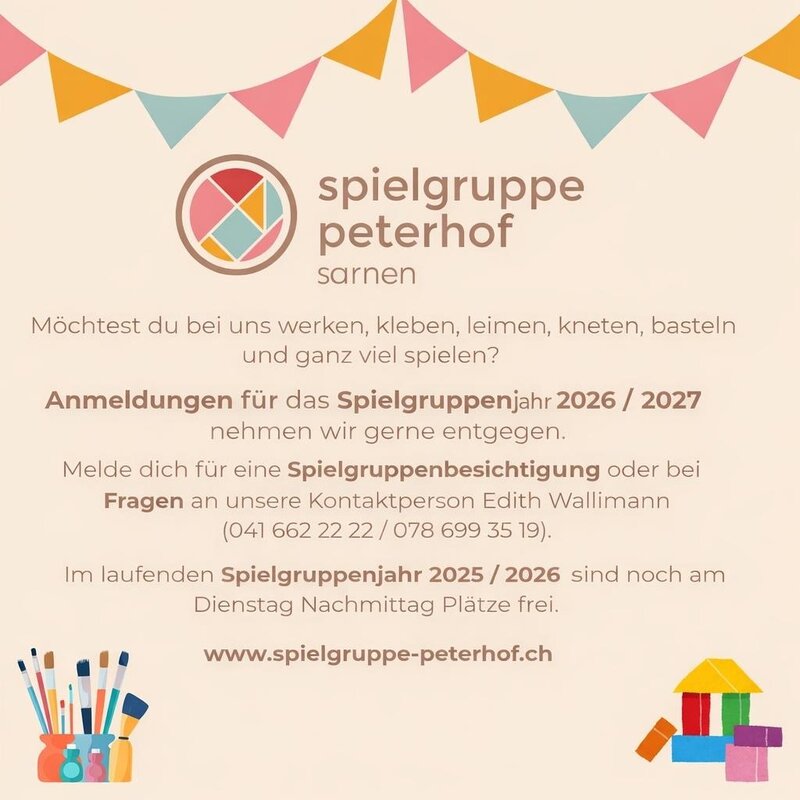 Die Spielgruppe Peterhof ist eine Untergruppe der Frauengemeinschaft Sarnen.